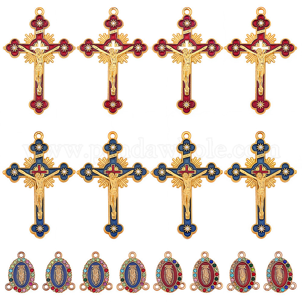 подвеска-крестик с распятием: около 53.5x36x2.5 мм, отверстие : 1.8 мм, 2 цветов, 6 шт / цвет, 12 шт.