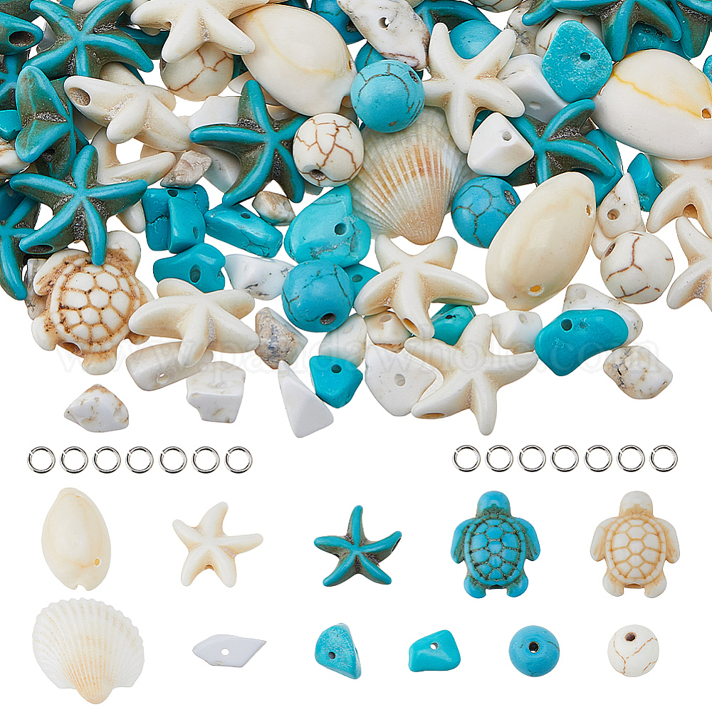 • Смешанные камни Наборы для самостоятельного изготовления бусин на тему летнего океана, включают синтетическую бирюзу, синтетический магнезит, натуральная раковина каури