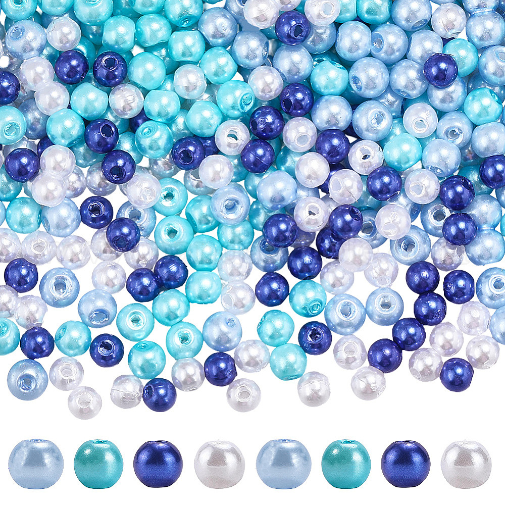 1200 шт 4 акриловые бусины в стиле имитация жемчуга, окрашенные, круглая бусина из перламутрового стекла с росписью для запекания, круглые