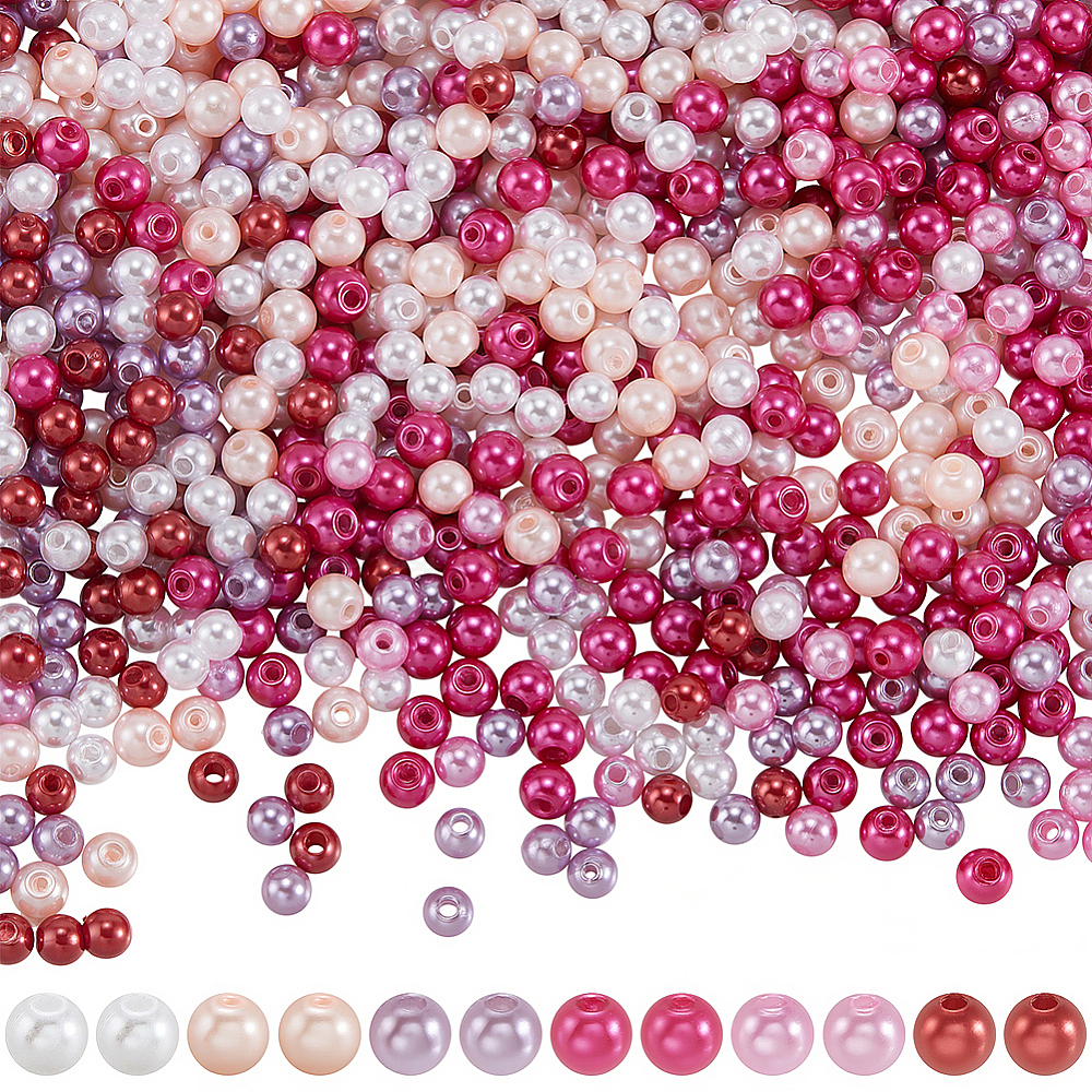 1200 шт 6 акриловые бусины в стиле имитация жемчуга, окрашенные, круглая бусина из перламутрового стекла с росписью для запекания, круглые (032YR9)