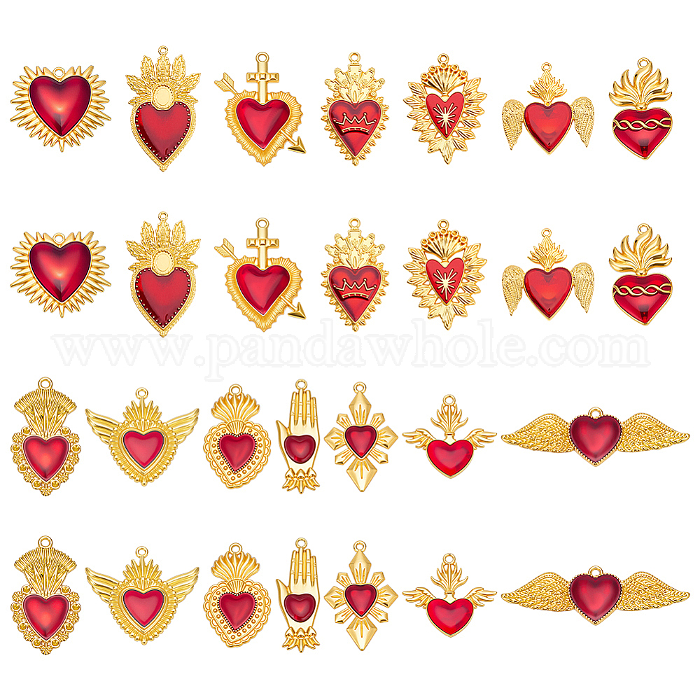 • Красный 28 шт. 14 стили для самостоятельного изготовления бижутерии в форме сердца, включая подвески из эмалевого сплава, оправы для подвесок со стразами и оправы для подвесок с кабошонами, красные, 29~59x15~40x2.5~5 мм, отверстие : 1.6~2.2 мм, 2 шт / стиль