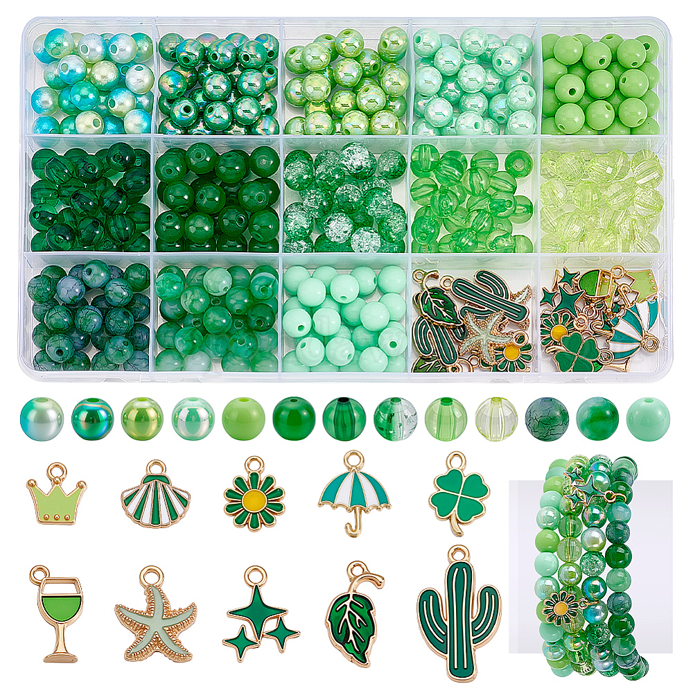 • Зеленый Набор ювелирных изделий diy, в том числе акриловые бусины, Подвески из эмали и сплава, зелёные, 19x10x2 мм, отверстие : 1.8 мм