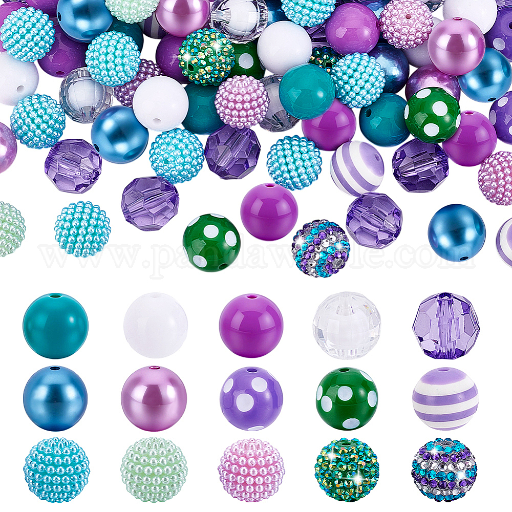 • (52) Непрозрачная лаванда Наборы для самостоятельной сборки круглых бусин, в том числе прозрачные акриловые бусины, абс пластиковые жемчужные бисера, Бусины со стразами из смолы, разноцветные, 18~20 мм, отверстие : 1.8~2.5 мм