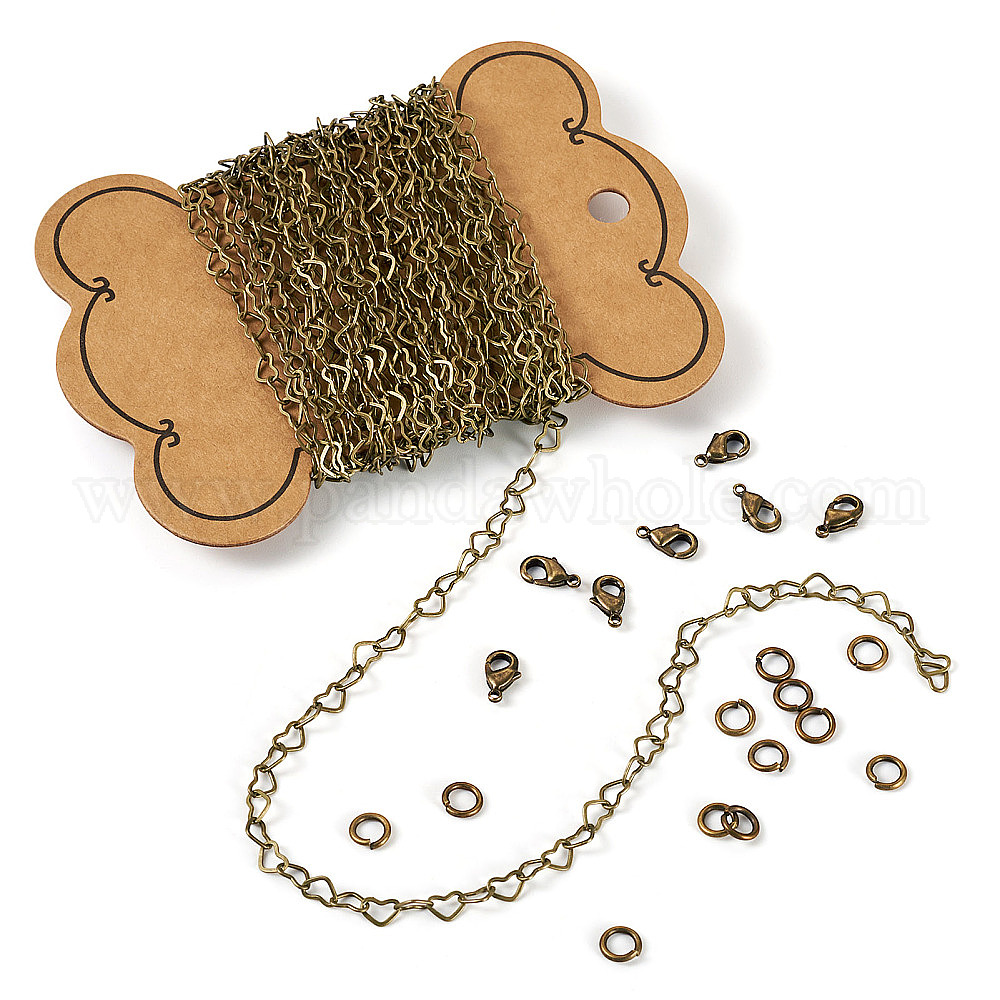 Ювелирные изделия, включая латунные цепочки в форме сердца, открытые соединительные кольца и карабины