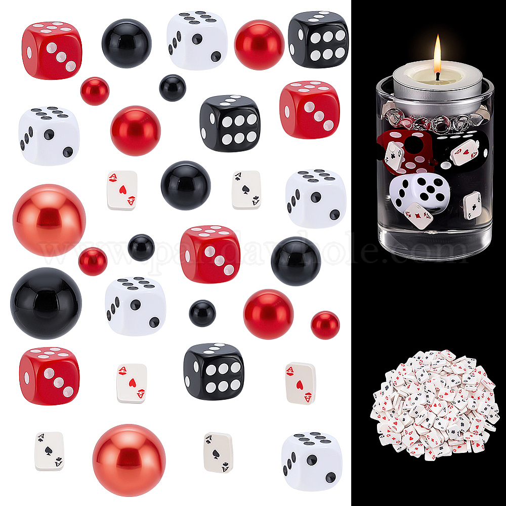 Наборы для бисера, включают 70шт. 6 стили бусины из АБС-пластика с имитацией жемчуга, 30шт. 3 цветные непрозрачные акриловые кубики, 220шт. мини-игральная карта из полимерной глины ручной работы