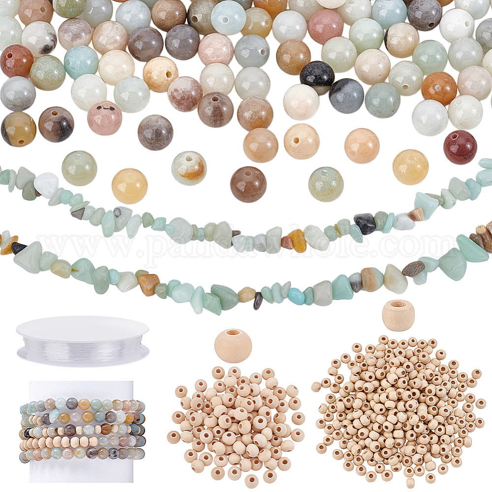 Наборы для самостоятельного изготовления украшений, включают в себя натуральные бусины из цветочного амазонита, незаконченные деревянные бусы, прозрачная эластичная кристаллическая нить