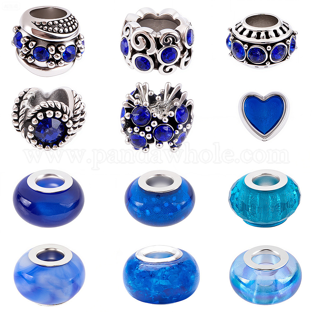 60 шт. 12 стили европейские бусины из сплава со стразами/эмалью и наборы европейских бусин из смолы