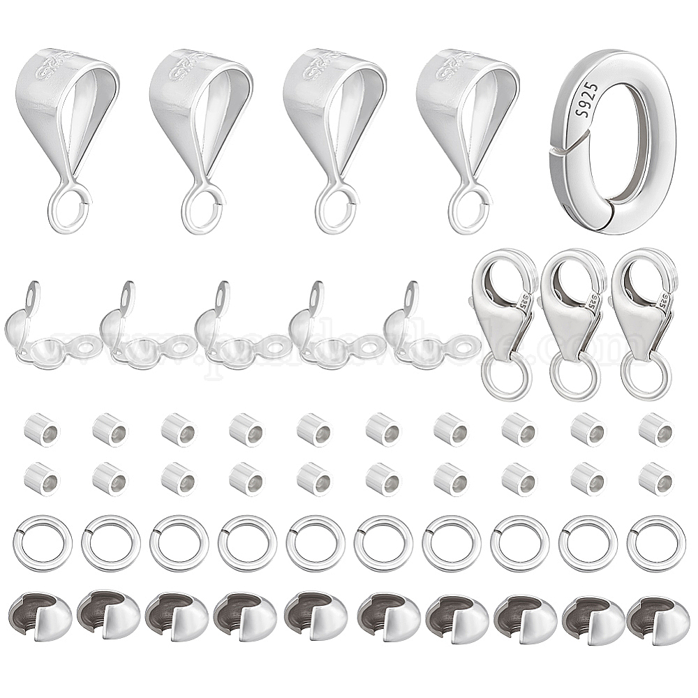 925 Кольца-пружинки и трубчатые дужки из стерлингового серебра, застежка-карабин, открытые соединительные кольца, бусины-разделители и защитная пленка для бусин-кримп