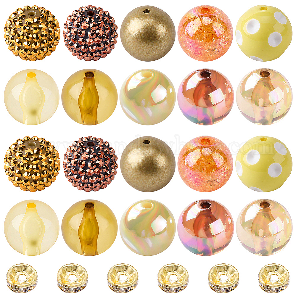 круглые бусины из смолы со стразами: 20x18мм, отверстие : 2~2.5 мм, 3 цветов, 2 шт / цвет, 6шт.;