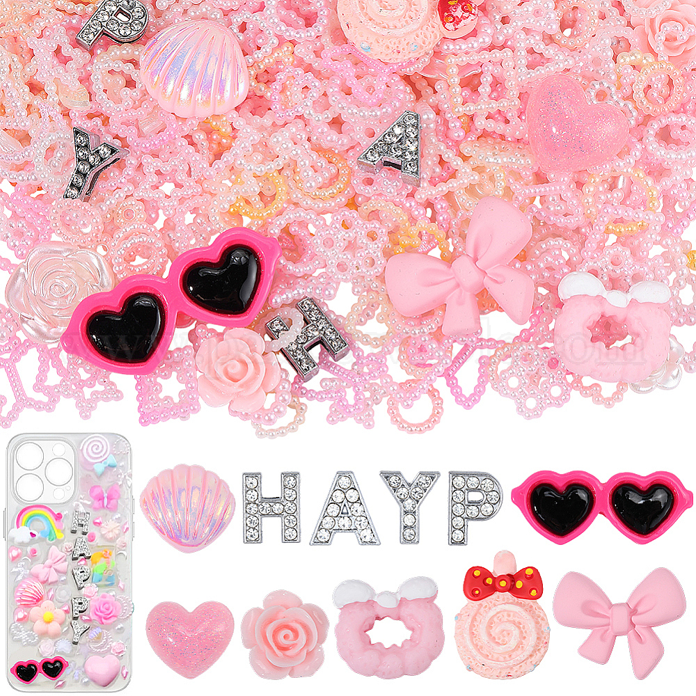 Наборы для самостоятельного декорирования чехлов для телефонов, включая подвески-слайды из цинкового сплава, абс пластмассовые имитационные жемчужные кабошоны, Кабошоны из смолы