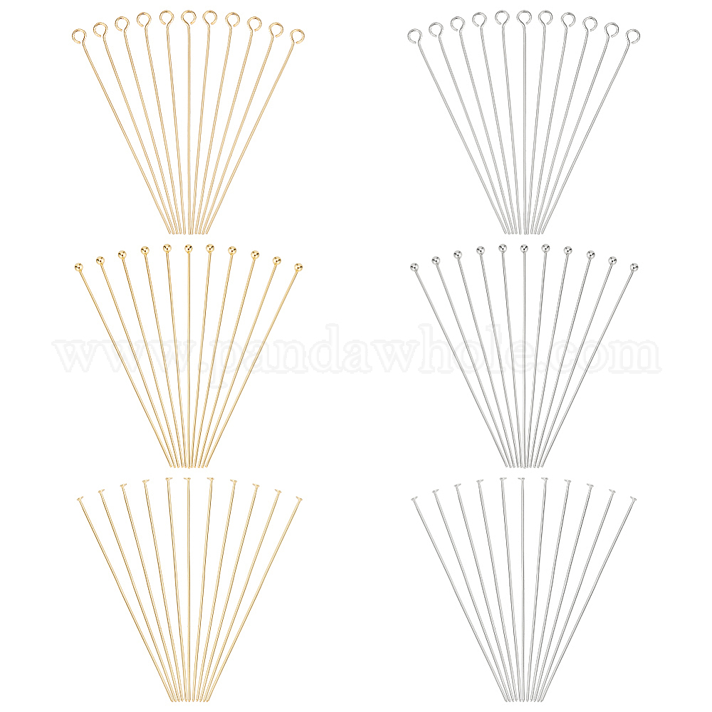 • Золотой & Цвет Нержавеющей Стали 600 шт. 6 виды 304 штифты с плоской головкой, шарообразной головкой и ушком из нержавеющей стали, золотые и нержавеющая сталь цвет, 50x0.6~0.7 мм, Руководитель: 1.5~1.8 mm