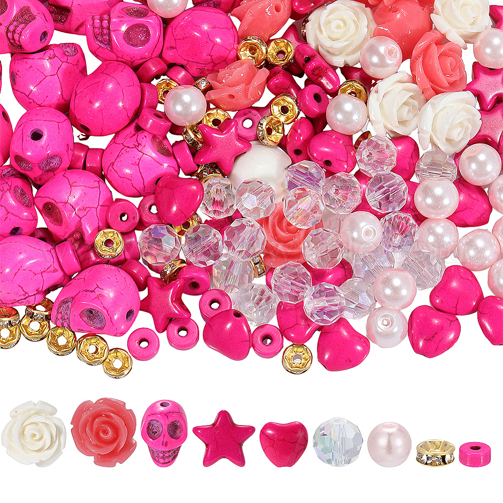 • (52) Непрозрачная лаванда Наборы для находки бисера своими руками, в том числе синтетические бирюзовые бусины, синтетических коралловых бусин, железные хрустальные бусины-разделители со стразами, Стеклянные бусины, разноцветные, 6~15x6~15x2.5~14 мм, отверстие : 1~1.6 мм, 430 шт / комплект