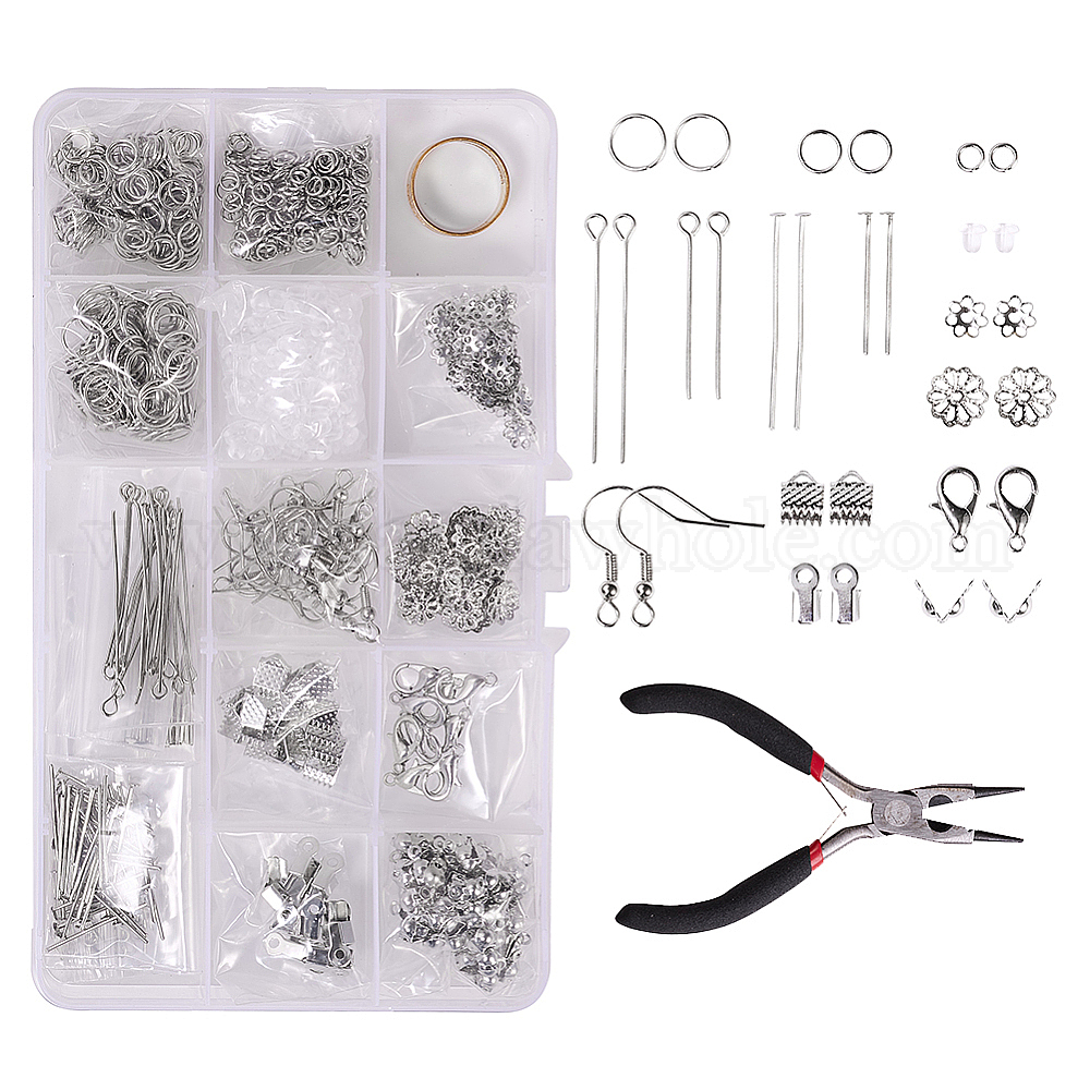 Наборы для поиска ювелирных изделий своими руками, с железными булавками и булавками для глаз, складывающимися обжимными концами, концами лент, крючками для серег, колпачками для бус, наконечниками для бус и прыжковыми кольцами, инструмент латунь помощник, Карабин-лобстер из цинкового сплава