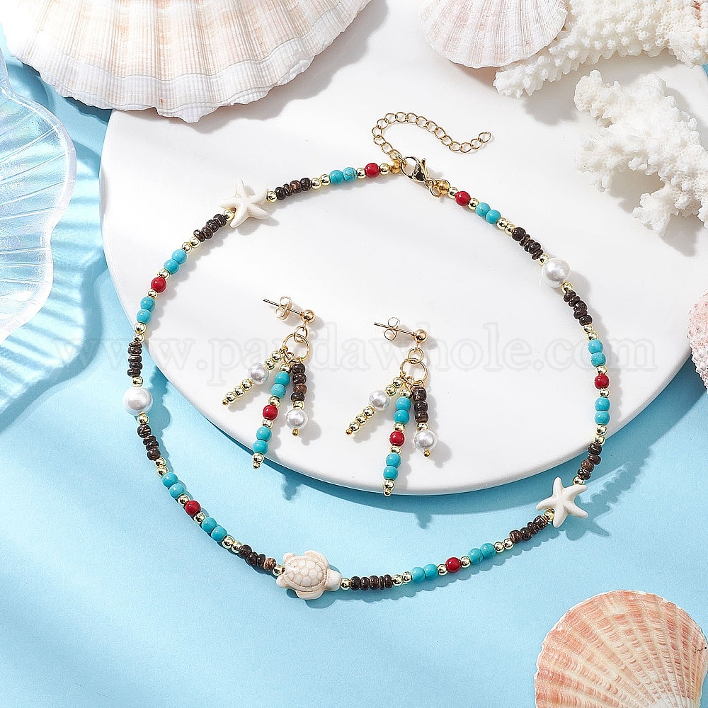 Комплект из ожерелий и серег из синтетической бирюзы для женщин, черепаха и морская звезда