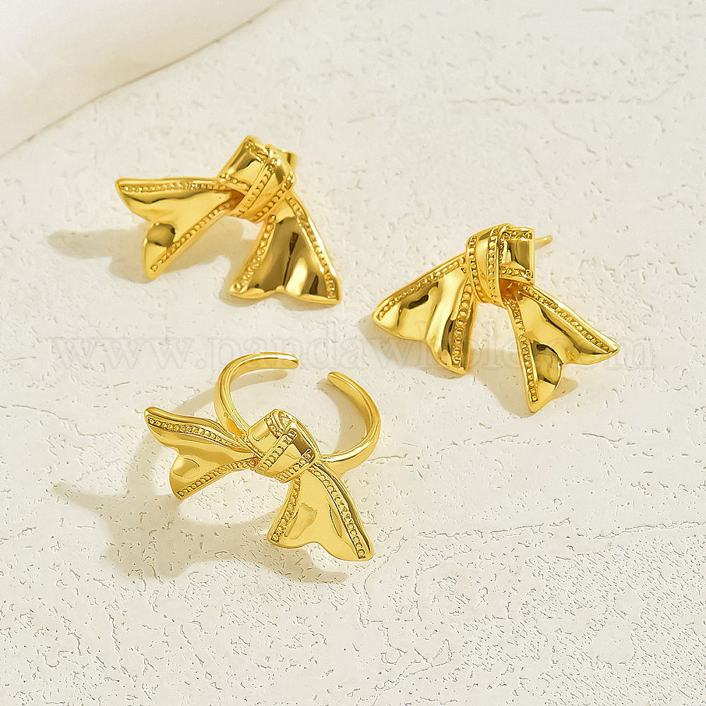 Роскошный комплект из латунных серег-гвоздиков с бантом и кольца-манжеты, комплект украшений для милых и классных дам