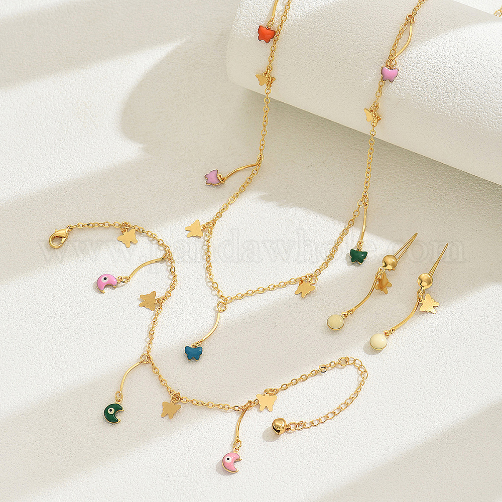Красочные бабочки сладкий французский комплект украшений для женщин, комплект из латунных браслетов, серег и ожерелий