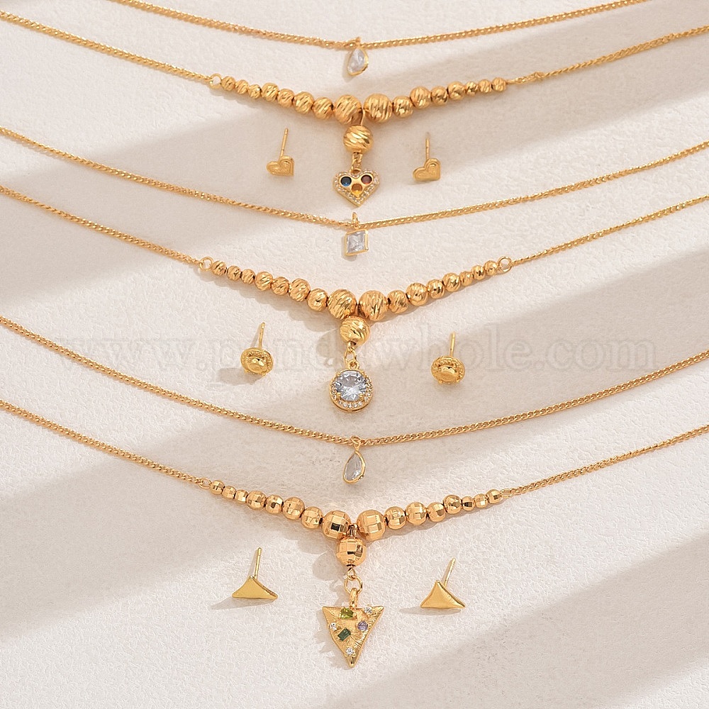 • Настоящее золото 18K Модный винтажный комплект из двухслойного колье с подвеской в виде сердца из латуни и сережек-гвоздиков для женщин, реальный 18 k позолоченный