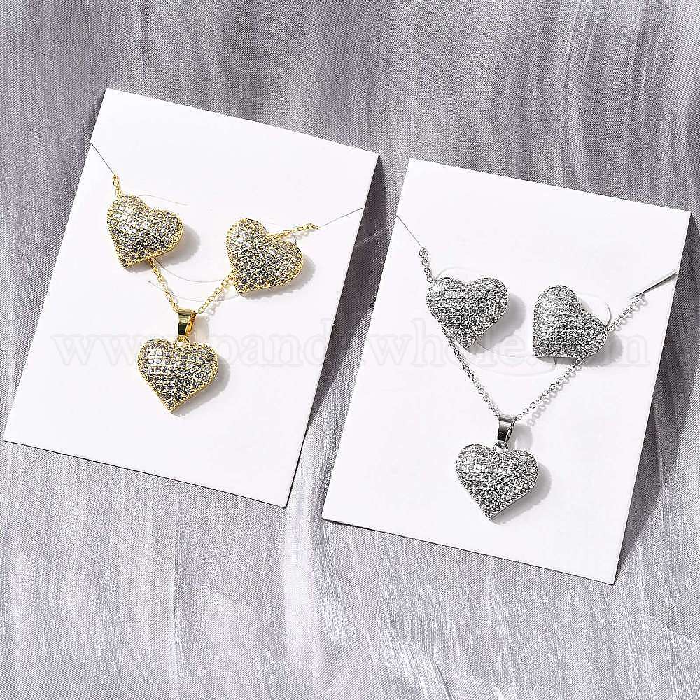 Комплекты из латунных серег-гвоздиков и ожерелий с микропаве из кубического циркония, без кадмия и без свинца, долговечный, стойки покрытие