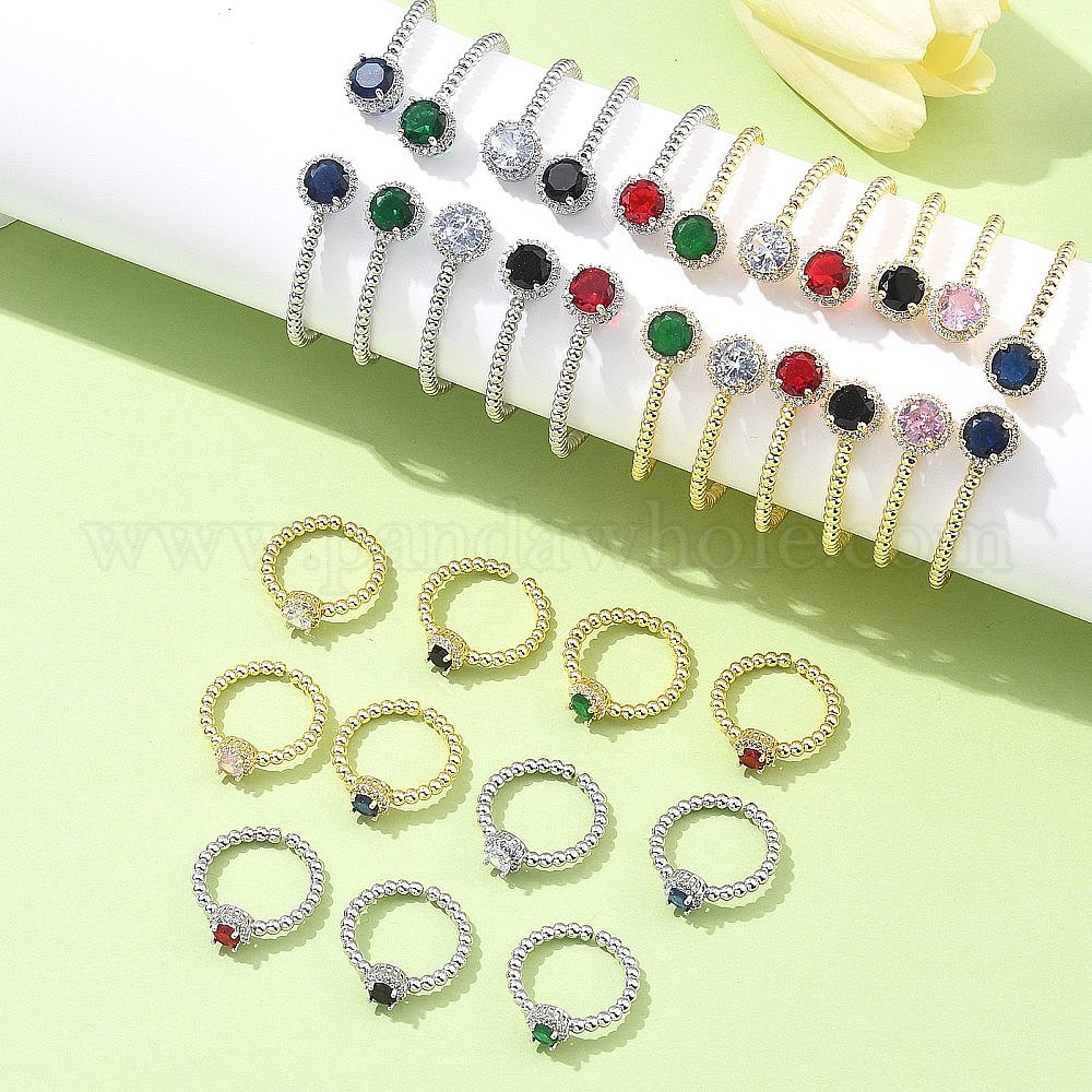 Круглые латунные браслеты-манжеты и кольца с микропаве из кубического циркония для женщин, стойки покрытие