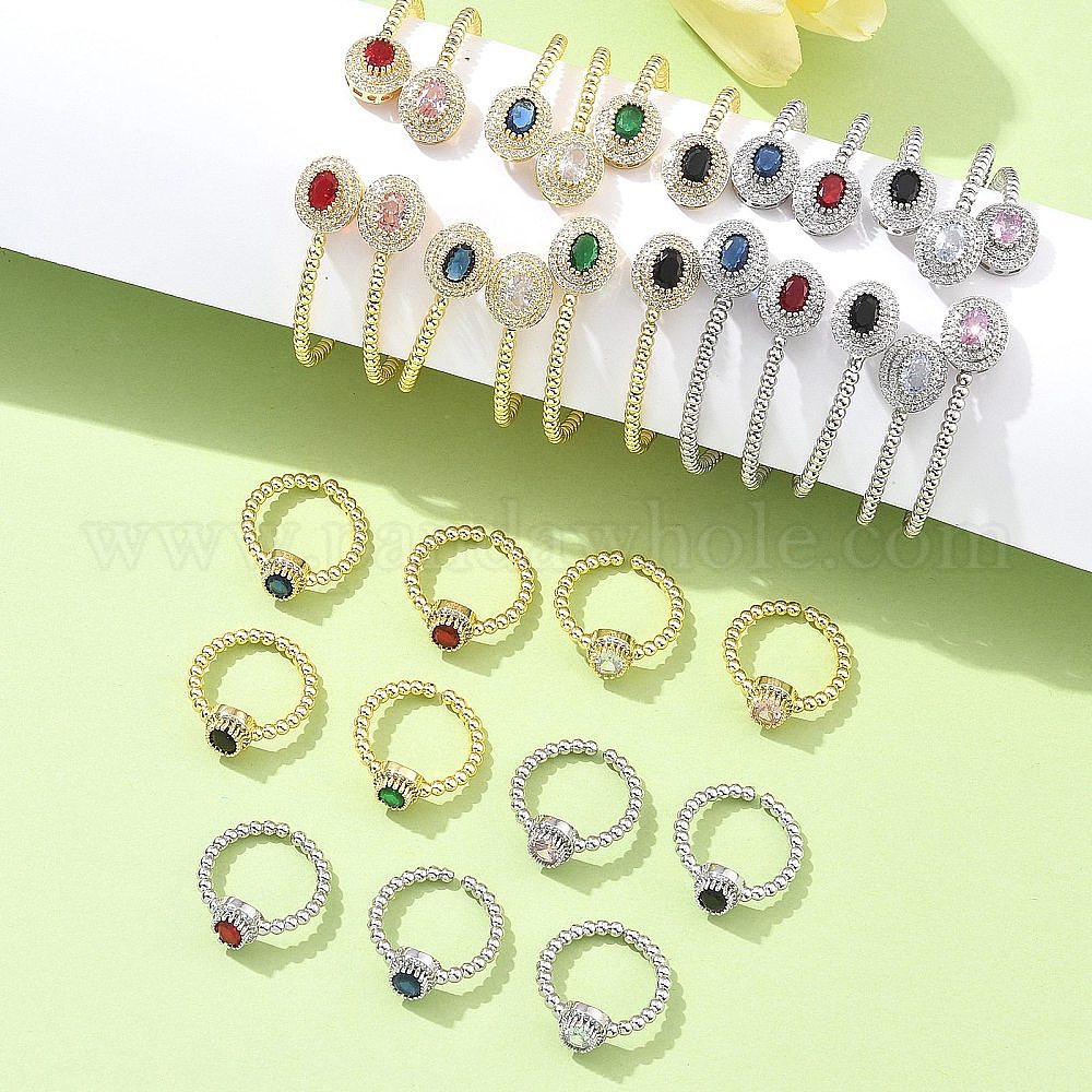 Овальные латунные браслеты-манжеты и кольца с микропаве из кубического циркония для женщин, стойки покрытие
