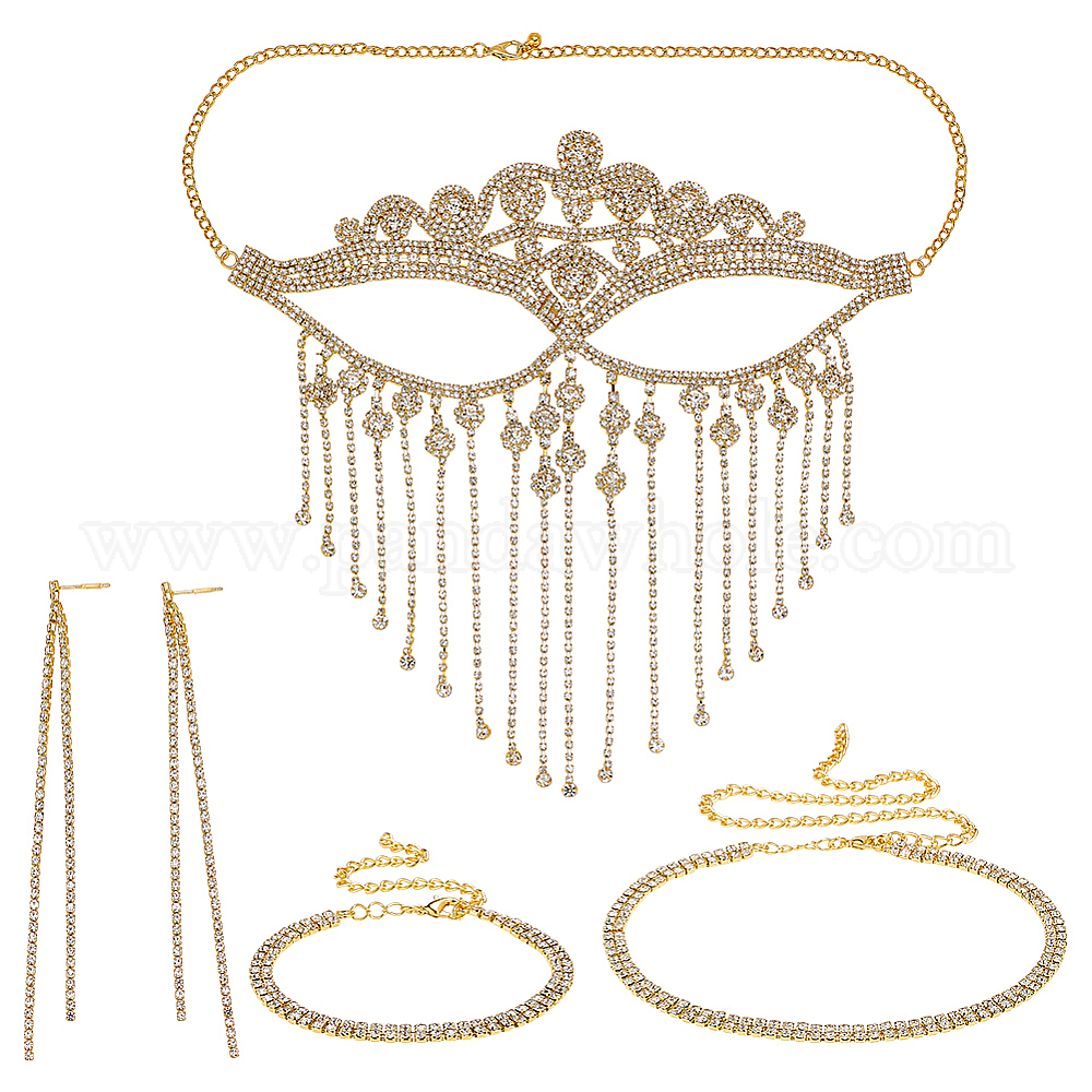 Комплекты ювелирных изделий, включая ожерелья, браслеты и серьги из латунных страз, маска для лица с кисточками из сплава стразов