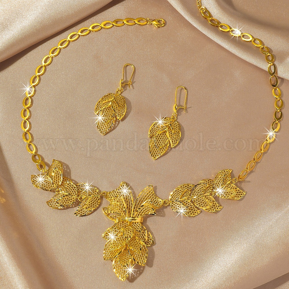 Комплекты из латунных ожерелий и серег-колец с полыми листьями для женщин