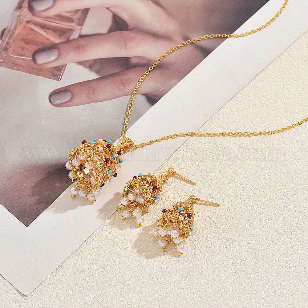 • Золотой Наборы из латунных и пластиковых сережек-гвоздиков и подвесок для женщин., золотые, ожерелья: 17.52 дюйм (44.5 см)