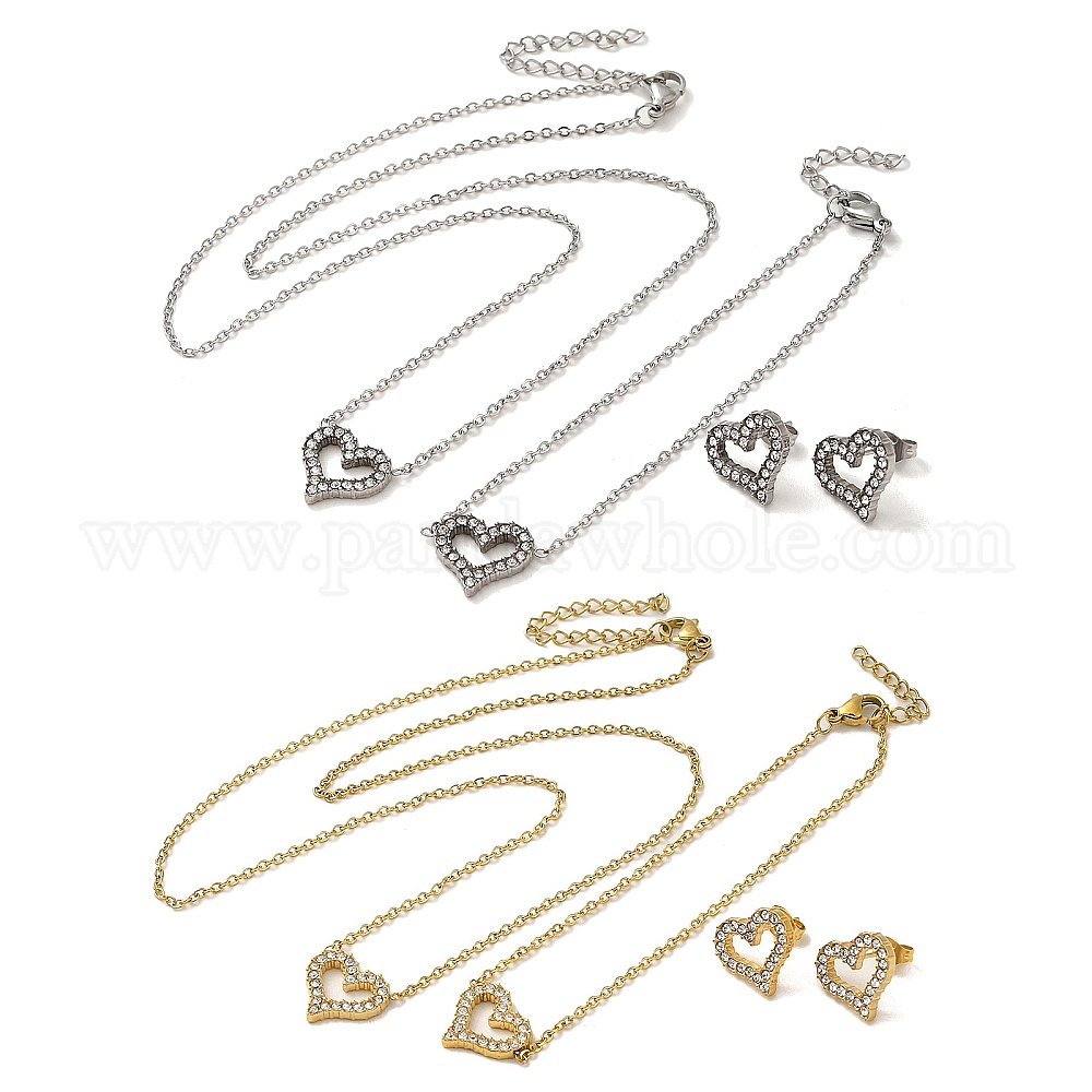 Сердце 304 комплекты ожерелий, браслетов и сережек-гвоздиков из нержавеющей стали со стразами для женщин