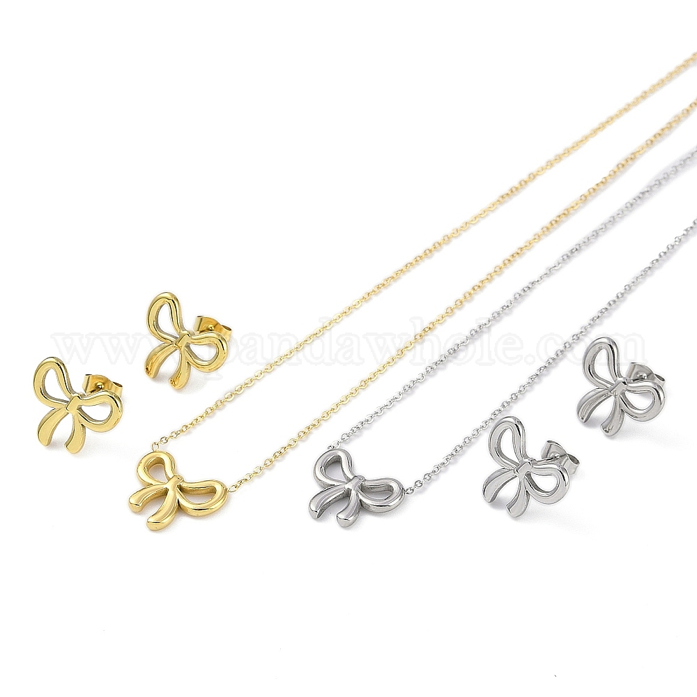 Ионное покрытие (IP) 304 комплект ожерелий и серег с бантом из нержавеющей стали для женщин