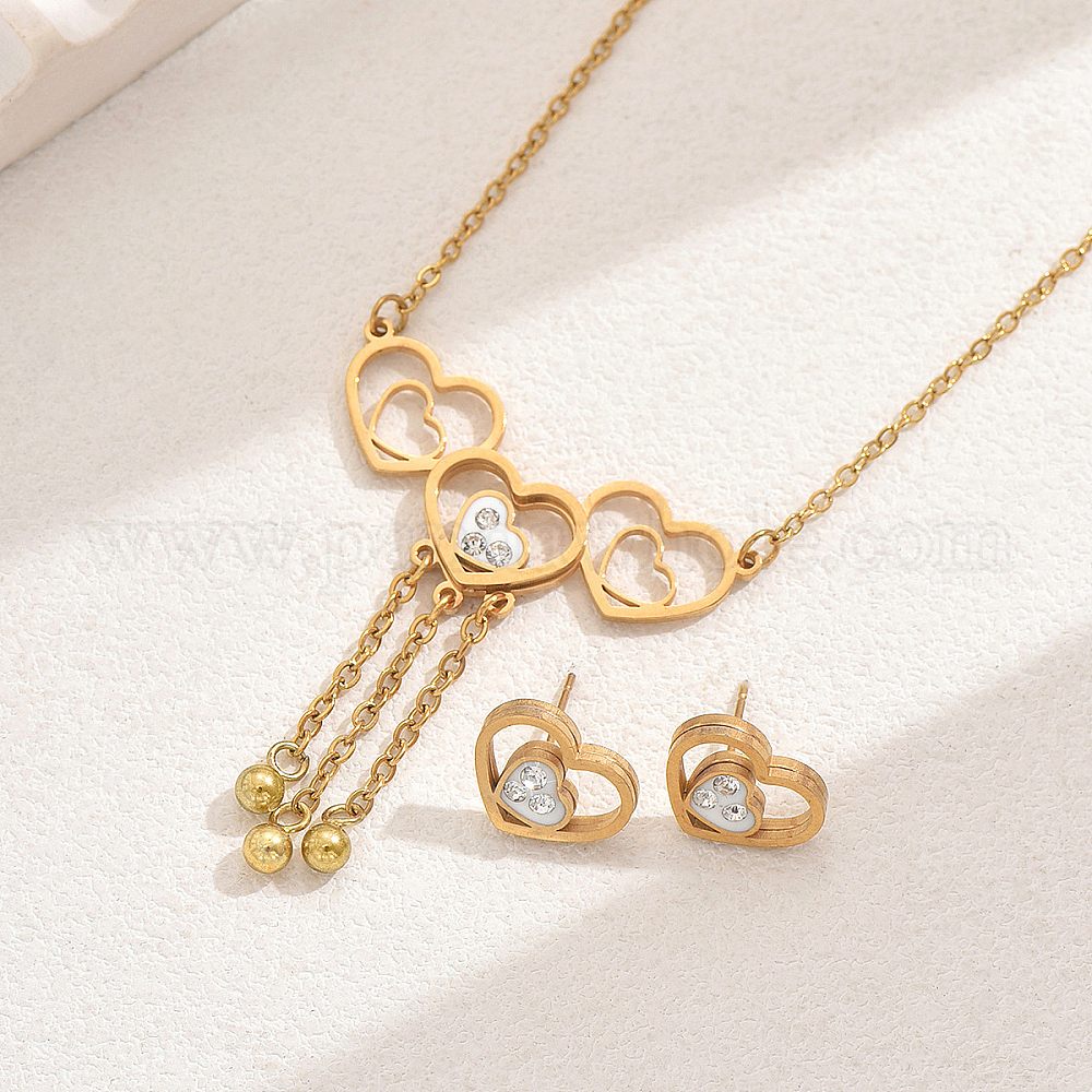 Элегантный и милый женский комплект из серег-гвоздиков и ожерелья в форме сердца из нержавеющей стали с кисточками