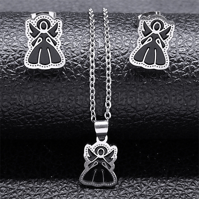 201 комплект из серег-гвоздиков и ожерелья с подвеской в виде ангела из нержавеющей стали для женщин
