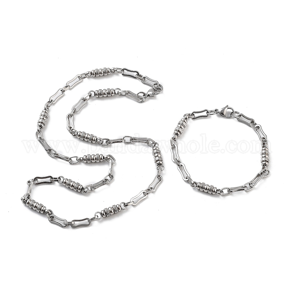 • Нержавеющая Сталь Цвет Антикоррозийный 201 комплект из ожерелья и браслетов из нержавеющей стали с овальными звеньями, 304 комплект украшений из нержавеющей стали с застежкой для мужчин и женщин, цвет нержавеющей стали, 23.46 дюйм (596 мм), 8.86 дюйм (225 мм)