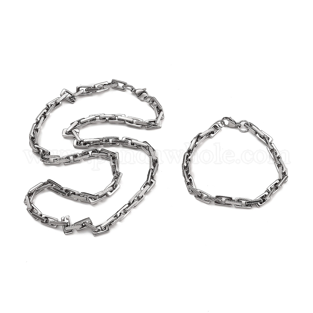 Антикоррозийный 201 комплект из ожерелья и браслетов из прямоугольной цепи из нержавеющей стали, 304 комплект украшений из нержавеющей стали с застежкой для мужчин и женщин
