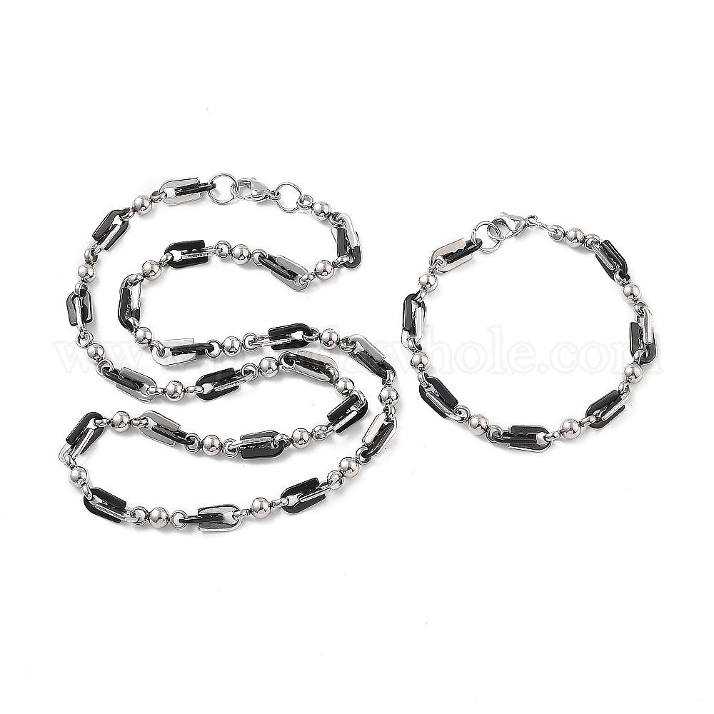 • Черный Вакуумное покрытие pvd 201 ожерелье и браслеты из круглой и арочной цепочки из нержавеющей стали, 304 комплект украшений из нержавеющей стали с застежкой для мужчин и женщин, черная и нержавеющая сталь цвет, 24.02 дюйм (610 мм), 8.66 дюйм (220 мм)