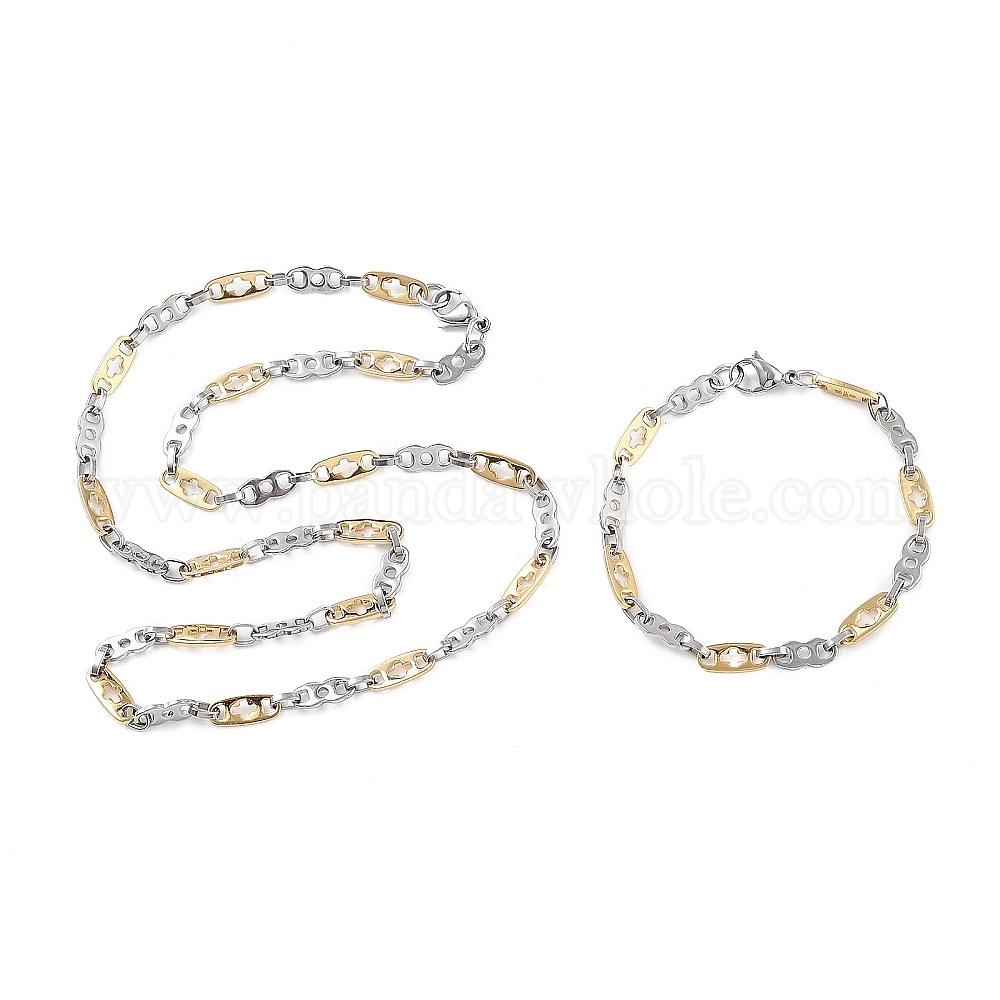 • Золотой & Цвет Нержавеющей Стали Вакуумное покрытие pvd 201 овальная нержавеющая сталь с цепочкой с поперечными связями ожерелье и браслеты комплект, 304 комплект украшений из нержавеющей стали с застежкой для мужчин и женщин, золотые и нержавеющая сталь цвет, 23.70 дюйм (602 мм), 8.86 дюйм (225 мм)