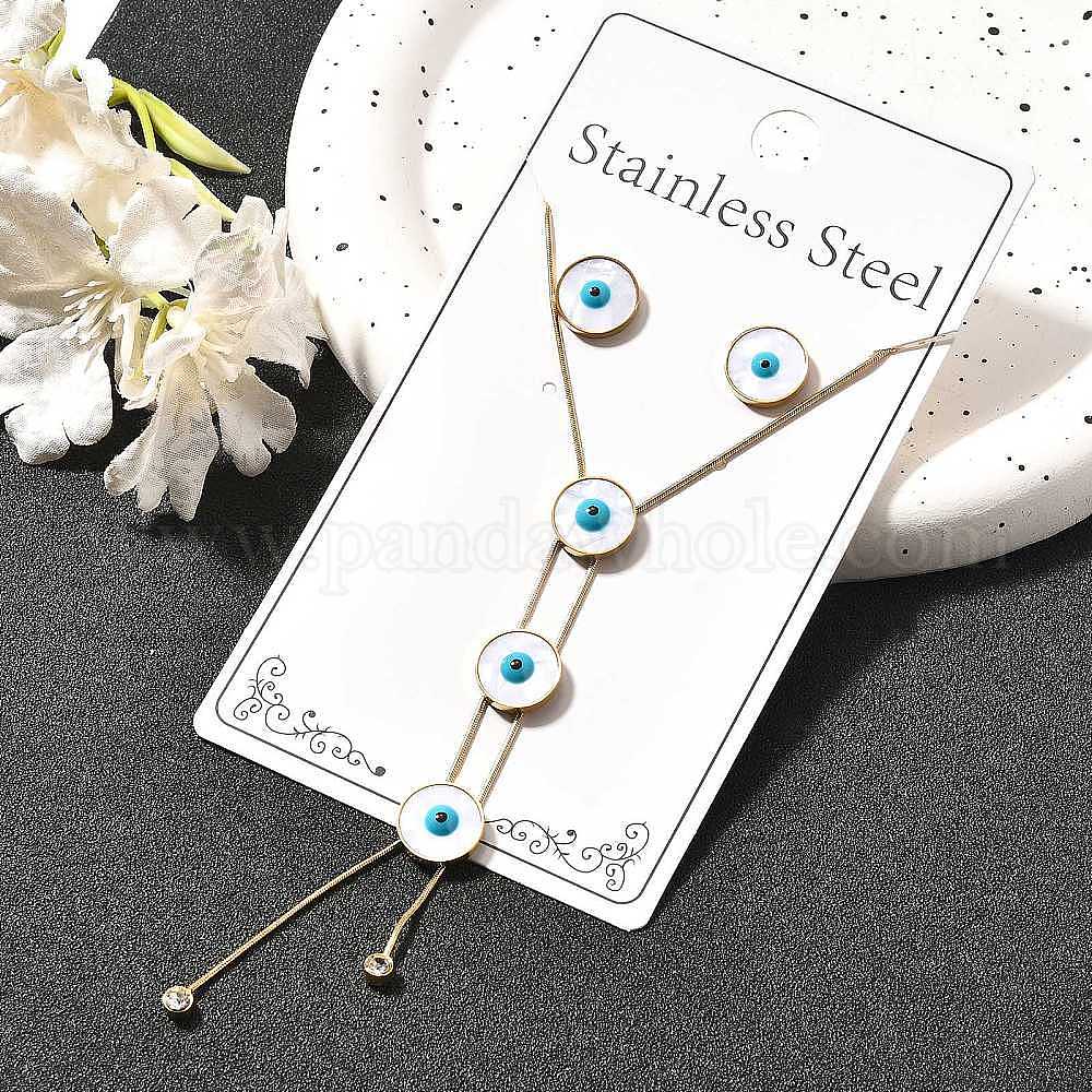 304 комплект из ожерелий и сережек-гвоздиков из нержавеющей стали, набор украшений из ракушек и эмали, плоских круглых, с изображением сглаза для женщин, ионное покрытие (ip) (02Z9S9)
