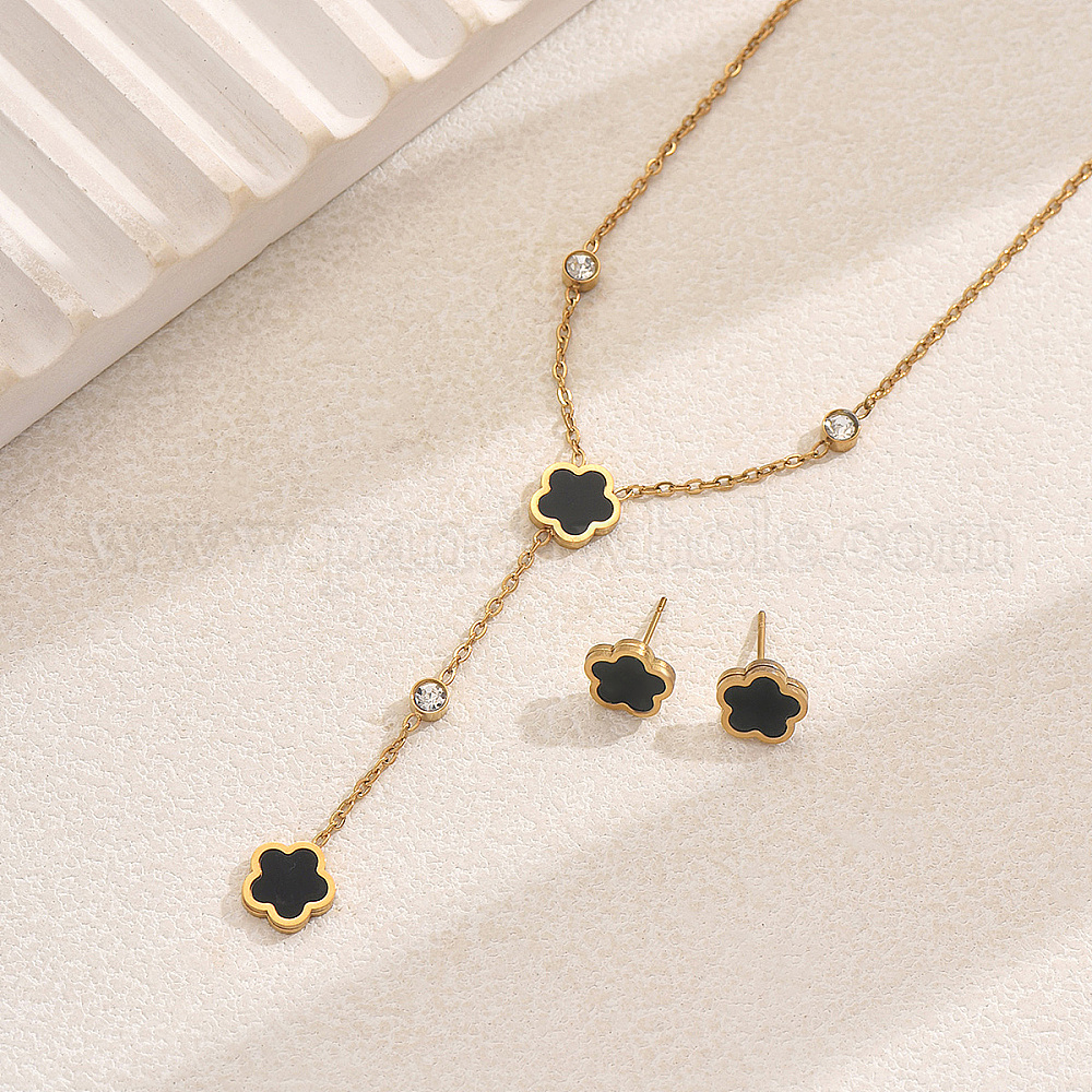 201 комплект из ожерелья-лариата со стразами из нержавеющей стали и серег-гвоздиков, комплекты украшений из ракушек и цветов для женщин (02ZX2T)