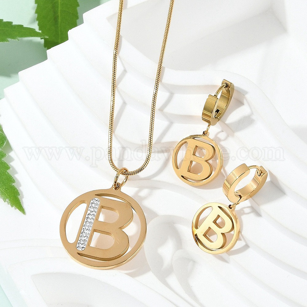 Плоские круглые с буквой b 304 ожерелья с подвесками из нержавеющей стали и комплекты украшений в виде серег-колец, с полимерной глиной горный хрусталь, ионное покрытие (ip)