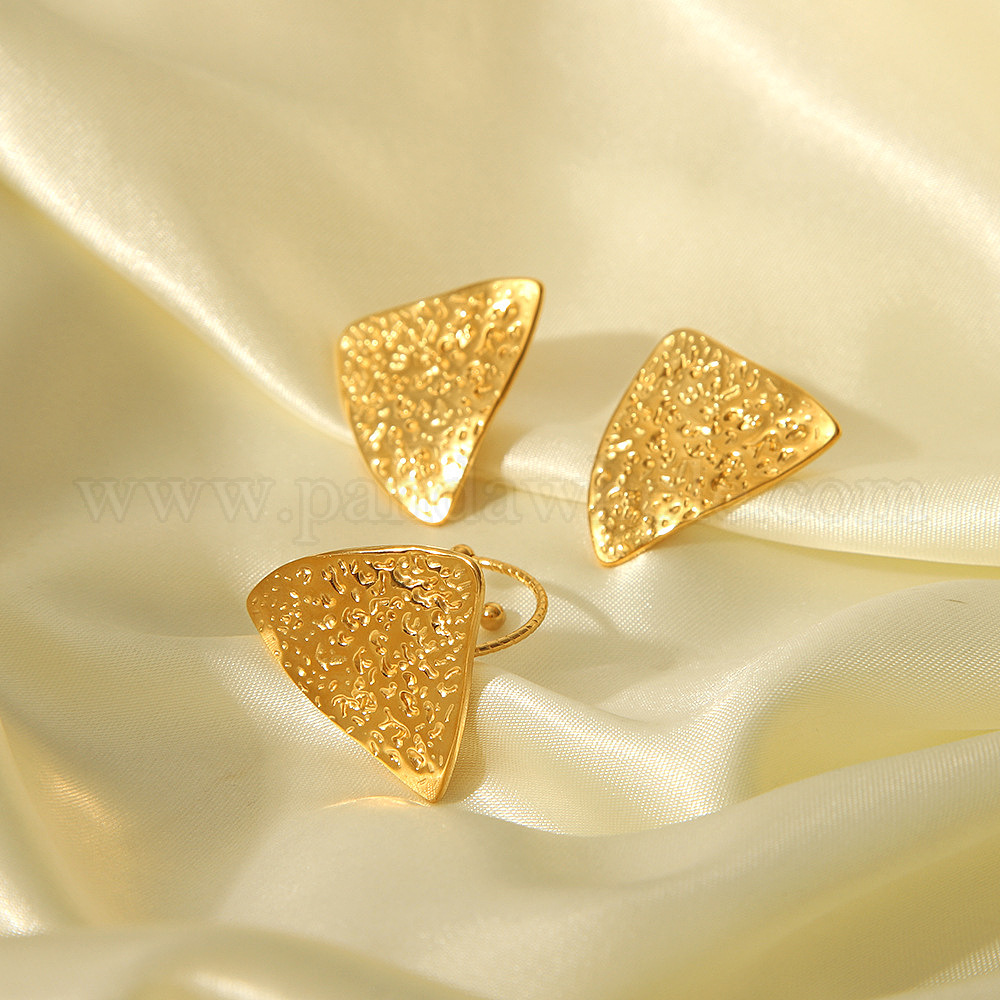 304 комплекты из серег-гвоздиков и колец-манжет из нержавеющей стали для женщин, треугольные