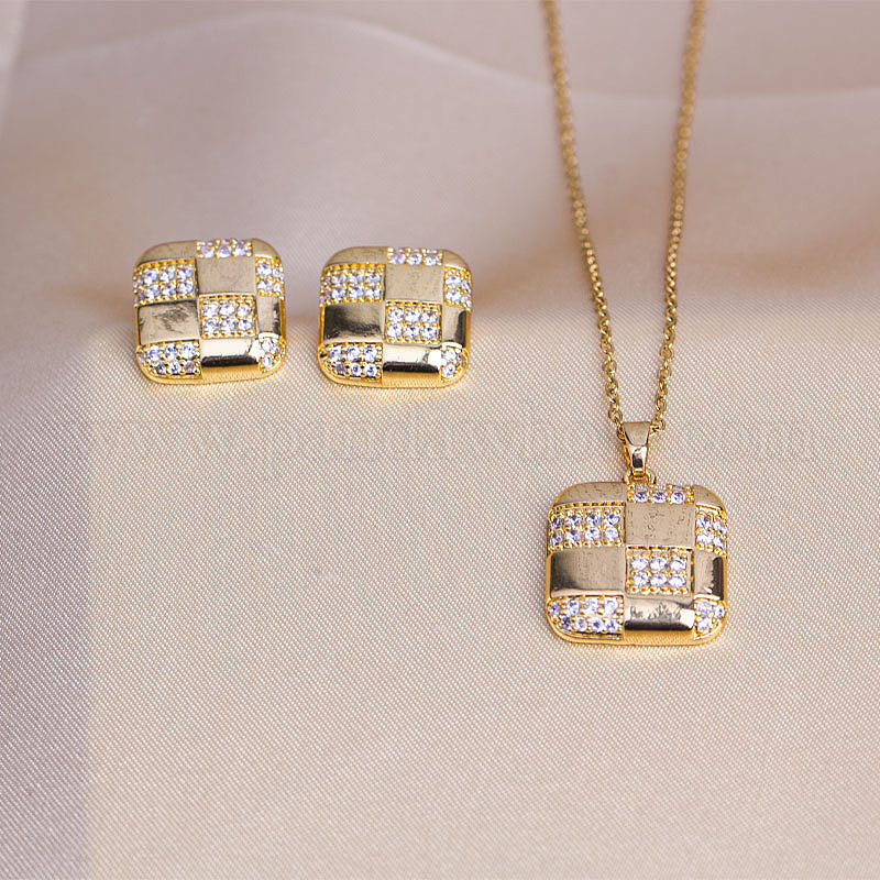 Квадратные 304 ожерелья с подвесками из нержавеющей стали и комплекты серег-гвоздиков со стразами