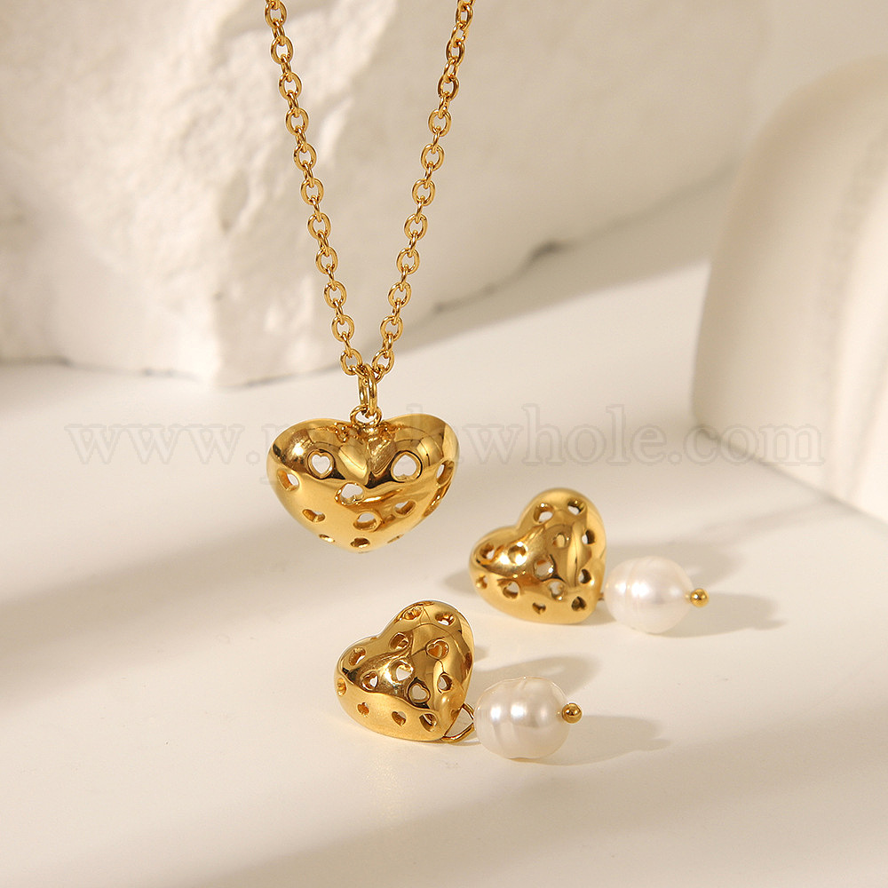 Полое сердце 304 комплекты из серег-гвоздиков и ожерелий с подвесками из нержавеющей стали для женщин