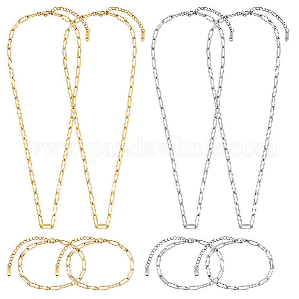 2 стили 2 цвета 304 комплекты браслетов и ожерелий из цепочек-скрепок из нержавеющей стали
