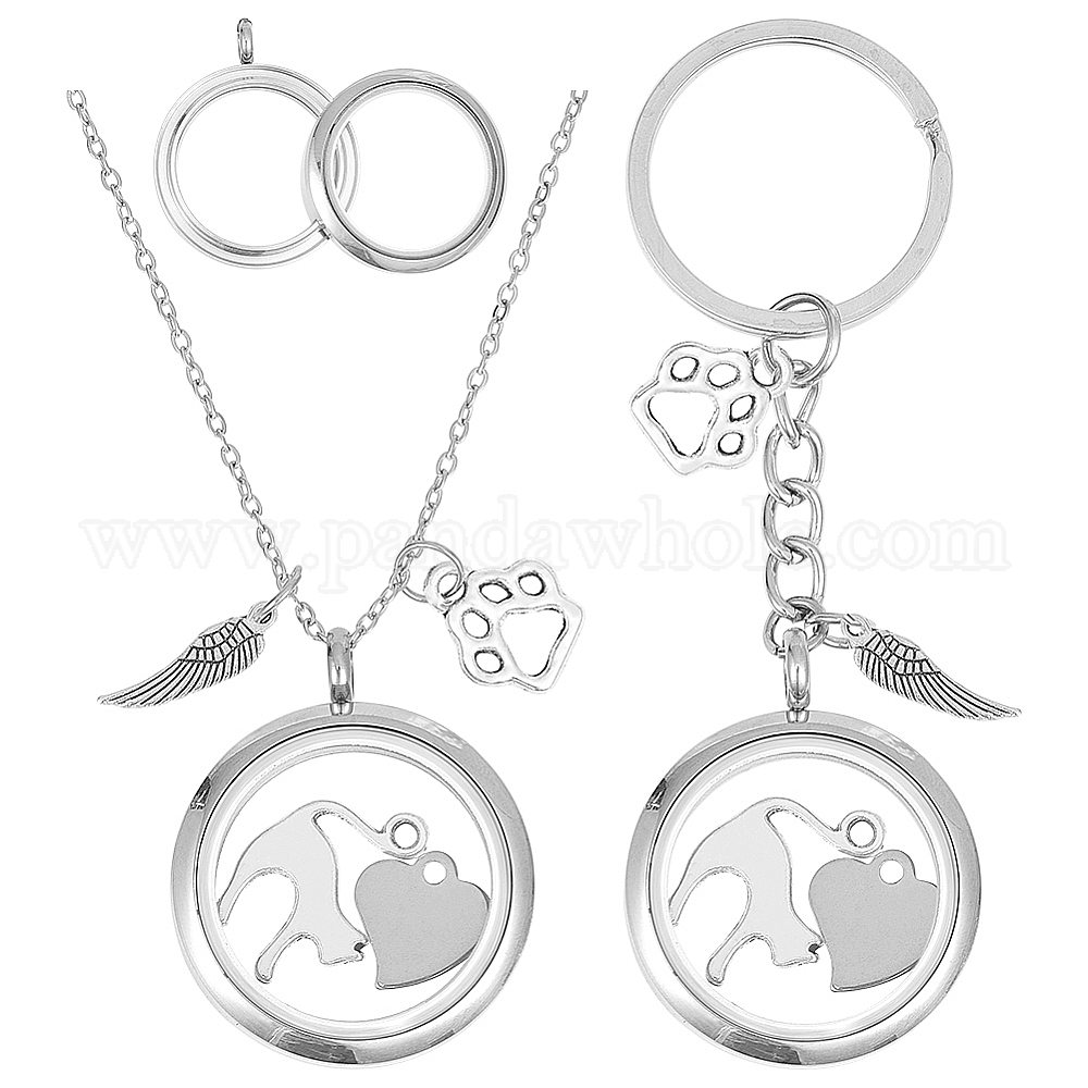304 комплекты ожерелий и брошей из нержавеющей стали, с подвесками-медальонами из сплава и нержавеющей стали и железными кольцами