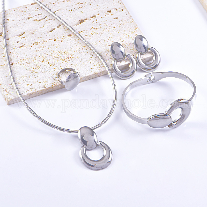 • Нержавеющая Сталь Цвет 304 ожерелья и браслеты из нержавеющей стали, серьги-гвоздики и комплекты колец, овальные, цвет нержавеющей стали, колье: 16.73 дюйм (42.5 см)