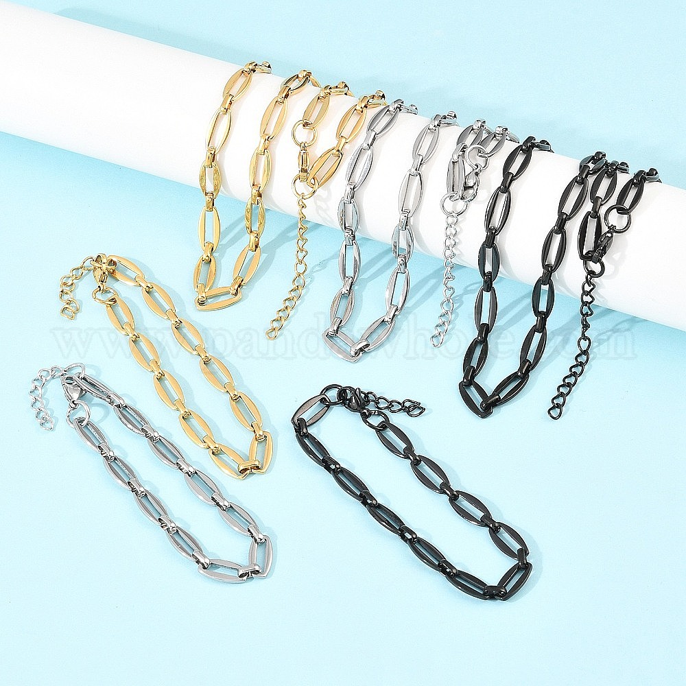 304 Набор ювелирных украшений из браслета и ожерелья из нержавеющей стали с овальными звеньями, с карабин-лобстерами