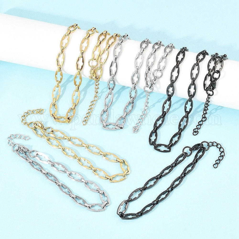 304 Набор ювелирных украшений из нержавеющей стали: браслет и колье с цепочкой в виде креста, с карабин-лобстерами
