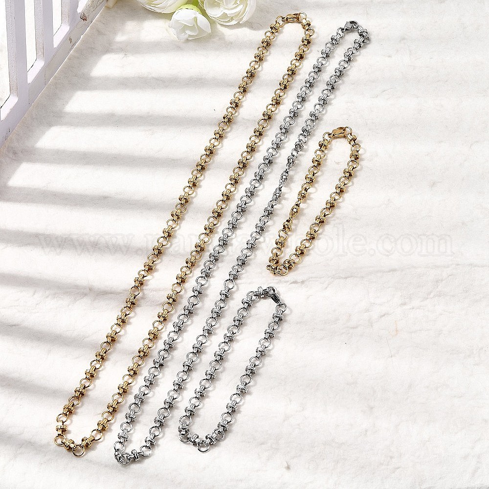304 Наборы украшений из браслета и ожерелья из нержавеющей стали с цепочкой., с карабин-лобстерами