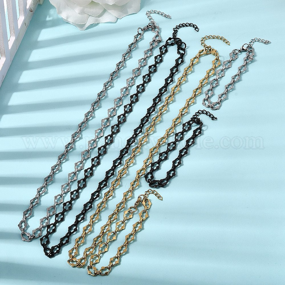 304 Наборы украшений из браслета и ожерелья из нержавеющей стали с цепочкой., с карабин-лобстерами