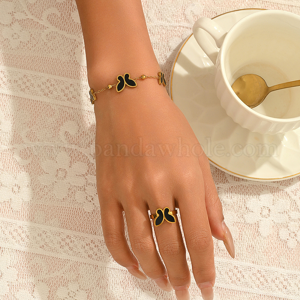 Женские браслеты и кольца из нержавеющей стали, бабочка, золотые
