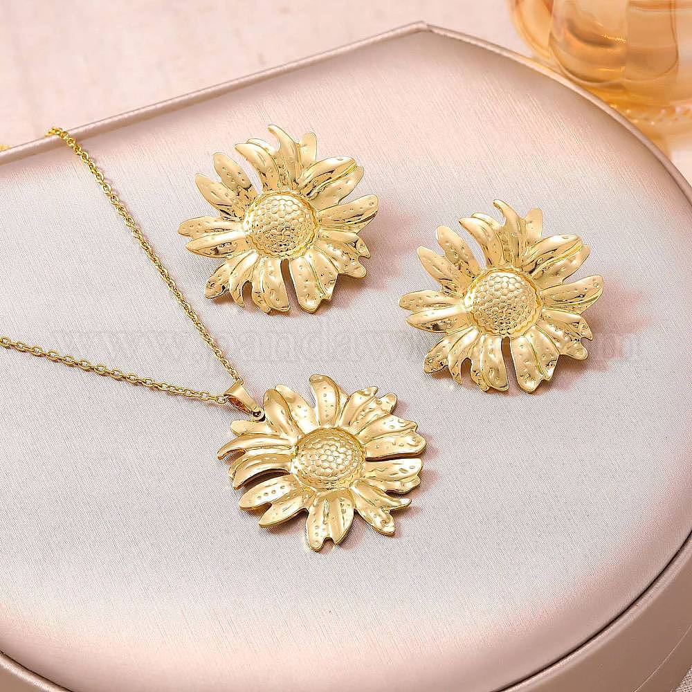 304 Наборы из кулонов-подсолнухов и сережек-гвоздиков из нержавеющей стали